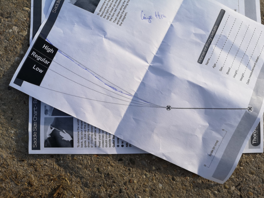 Ce matin avant le départ j'ai voulu prendre les mesures de Thorowgood sur le dos d'Amor. C'est tellement énorme que je devrais les envoyer au fabricant, juste pour rire