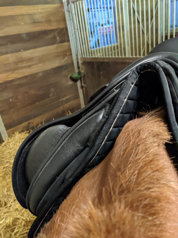 hathi je ne sais pas si ton amortisseur était « calé » au niveau du garrot mais il semble que le pommeau semble presque trop haut par rapport au troussequin.