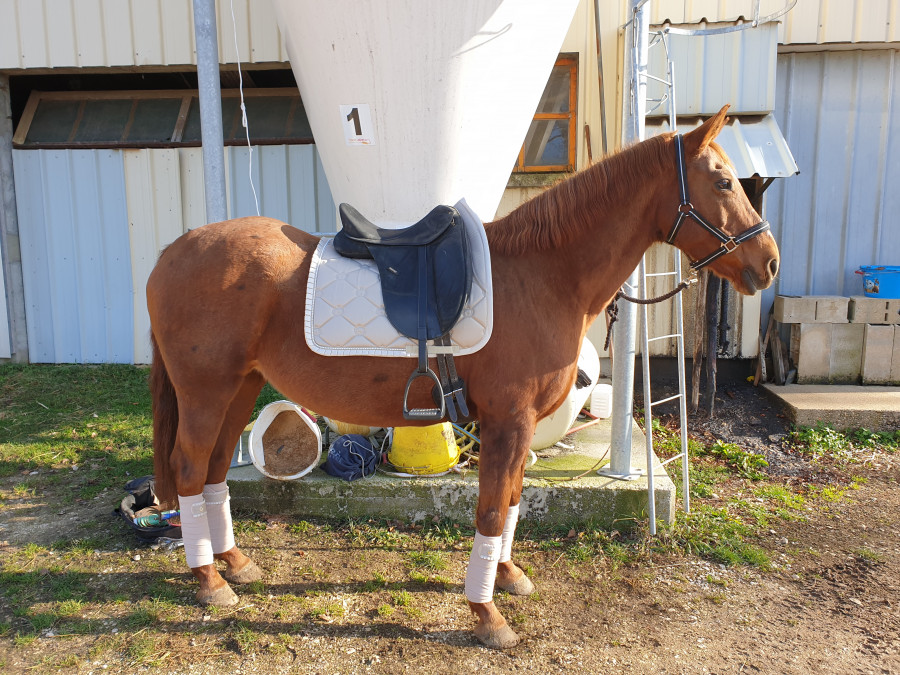 Par contre la couleur de l'ensemble est pas franchement adaptée à la cavalière d'extérieur que je suis, je vous laisse admirer l'état des bandes en fin de séance