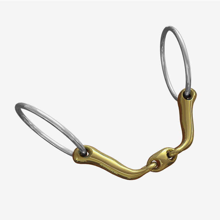 Pour Gris j'ai un siège de mors très bas dans la bouche, une grosse langue et de grosses lèvres, une bouche assez étroite (trop pour du double brisure), un cheval qui ne supporte aucune pression sur la langue (mais vu le siège de mors très bas, pas possible de le remonter) et des barres susceptibles. Ah. Il faut un truc méga stable. Pas appuyer, pas bouger, pas chipoter, rien. (Très sensible il est. Et non le sans mors c'est vraiment pas adapté).