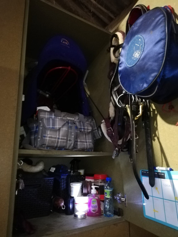 Sinon, j'ai profité pour faire une photo de mes armoires de sellerie. Hyper humides. J'ai peur que mon matos ne s'abime. Et comme vous pouvez le constater, il y fait très sombre (photos prisent en aprem). Si vous voulez en voir plus, je vais mettre les photos dans le post des armoires de sellerie