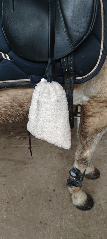 et la maman de ma binome de balade (enfin plus trop maintenant vu qu'elle a plus trop le droit de monter) m'a donné des housses d'étriers en moumoutte qu'elle a fait, j'adore