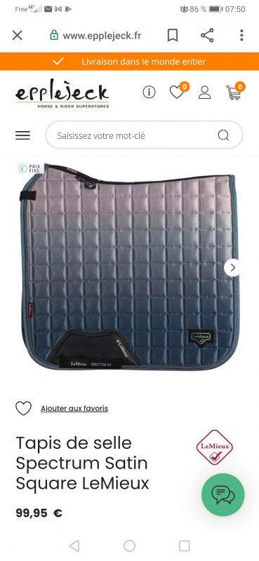 Bon... Je sais pourquoi je n'allais plus sur les selleries en ligne... Par pitié, est-ce que quelqu'un peut m'expliquer que cette beauté sublime n'a aucunement besoin de rejoindre le dos d'Azzar, que j'en ai un bleu acier qui ressemble un peu, que j'ai assez de tapis, que niveau dress tou h avec mon gros bidon de 5 mois qui dépasse en ce moment on repassera, et que mon gosse qui arrive dans 4 mois ne peut pas finir à poil alors que Poney a une garde robe plus que fournie...