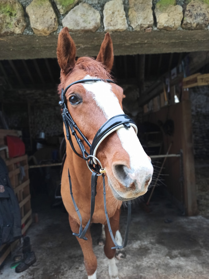 J'avais l'impression que la muserolle était hyper serrée et en voyant la photo, ça va, ya de la marge en fait.