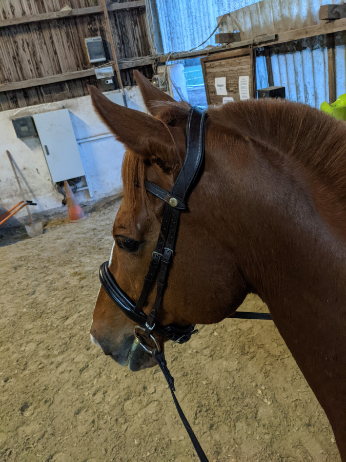hathi Trop beau en Punkie !Super s'il vient se poser davantage sur le mors ...avec un peu de patience ce sera de mieux en mieux . Je regardais ta tetiere : elle pose bien sur sa nuque malgré sa finesse et sans découpe particulière ! Comme quoi parfois faut faire simple !