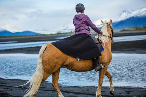Un truc que je ne regrette pas ces jours ci c'est ma jupe d équitation de chez Artic Horse. Combiné à une bonne paire de bottes caoutchouc et mon manteau Charles de Nevel je suis bien au sec et j'ai même trop chaud.
