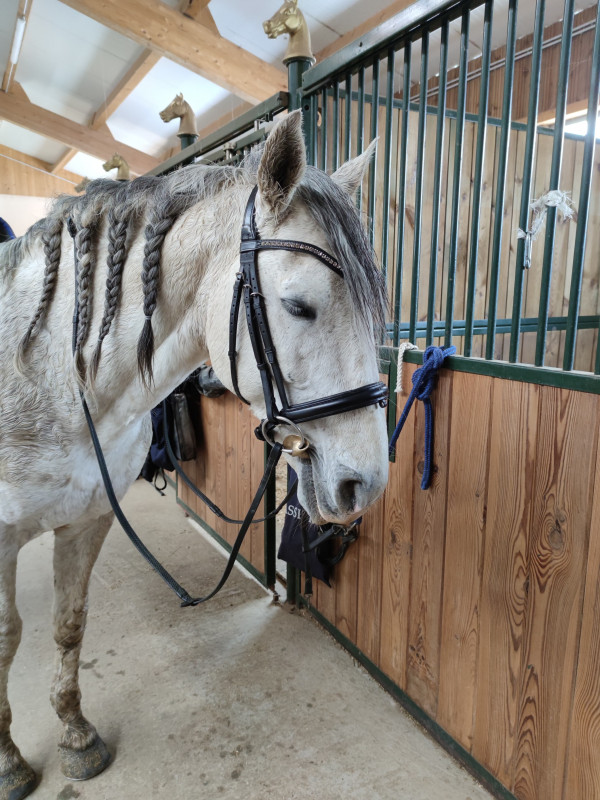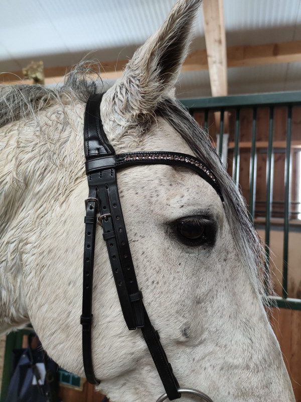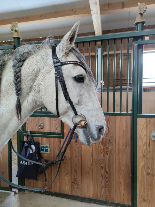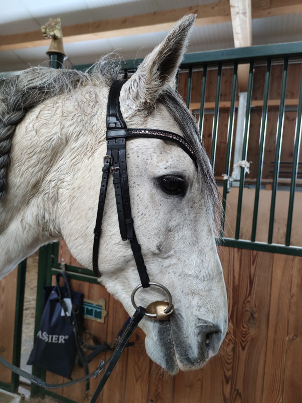 Bon j'ai mis la muserolle pour les photos mais vla comment il faisait la tête haha