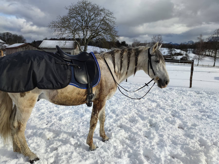 Après la All Purpose c'est ce que j'avais, c'est un terrain connu, et Simbad aime bien quand je suis en équilibre aussi ; en extérieur c'est pratique. Mais ça fait bien lonptemps que je n'ai pas été en mixte ! Et j'avoue que, comme c'était ma première selle, je n'en ai franchement aucun souvenir... c'était massif, c'est tout ce dont je me souviens, et je me sentais assez loin de lui. Mais bon ça c'est dès qu'il a une selle.