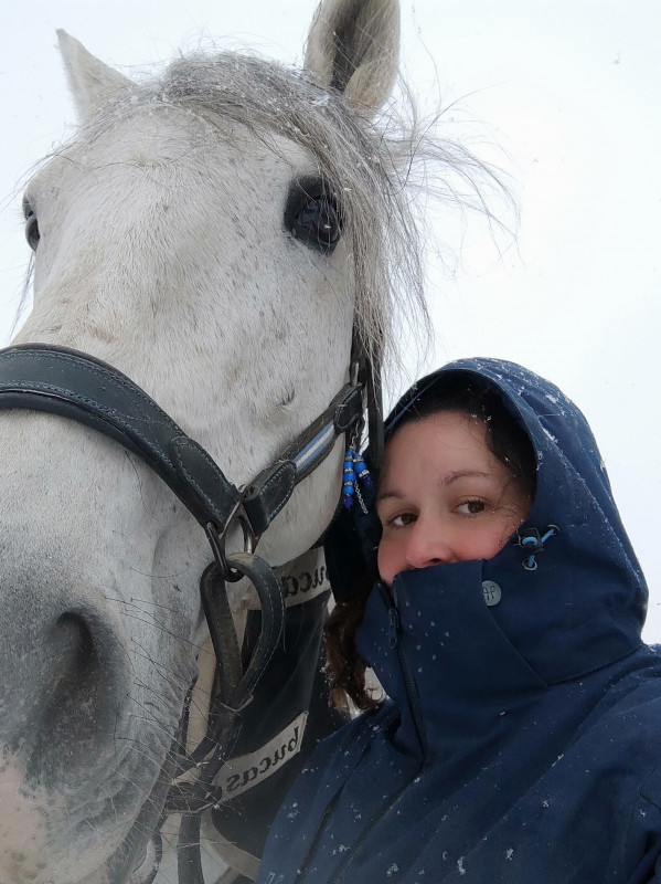 Et du coup ben ça a été pansage, massage et un tout petit tour à pied dans la neige ...