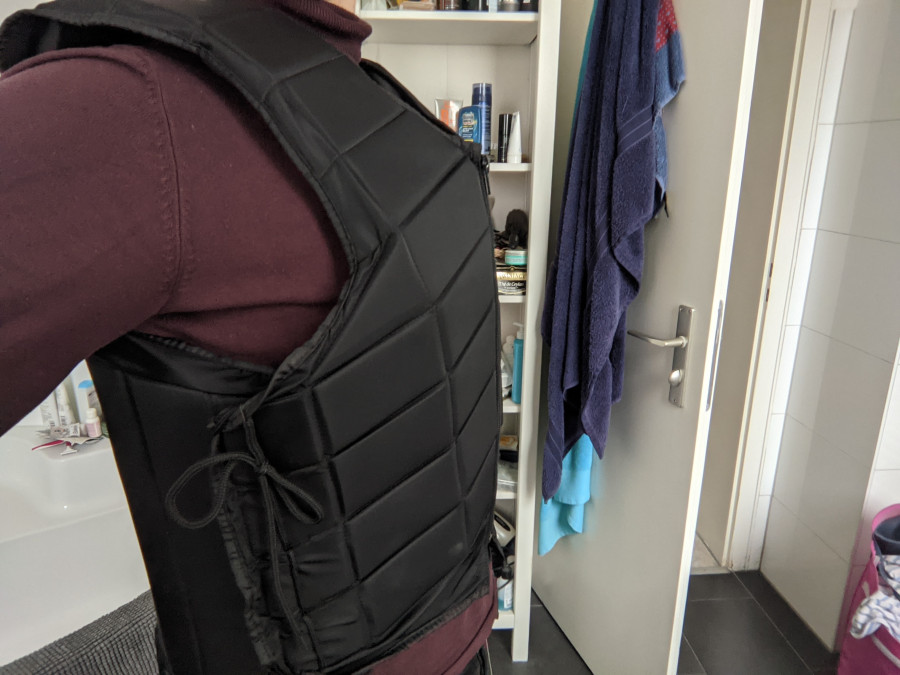 Je vais peut-être juste me prendre une dorsale en fait, selon comment je suis à l'aise avec le gilet de la copine. A l'époque où j'en mettais à chaque fois c'était juste pour détendre des PS rênes longues, je montais pas vraiment avec, j'avais besoin de rien faire avec mon corps.