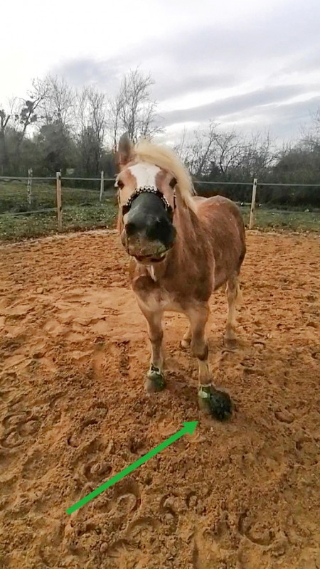 Et puis hier en currant les pieds : un joli petit trou en apex de la fourchette, du coup je suppose qu'il y avait surtout un abcès qui le gênait. Résultat, il était en pleine forme pour faire le débile, assez pour s'enlever une chaussure sur un démarrage au galop. Heureusement qu'elles sont costaud ! Par contre comme c'est resté accroché autour de son paturon il la regardait trop bizarre, j'étais morte de rire.