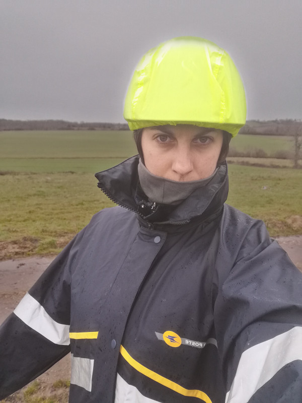 J'ai donc sorti le combo de la mort qui tue : chaps en softshell + imperméable La Poste + couvre casque imper'. Franchement les gens que j'ai croisé ont dû sacrément se fendre la poire en me voyant je pense.