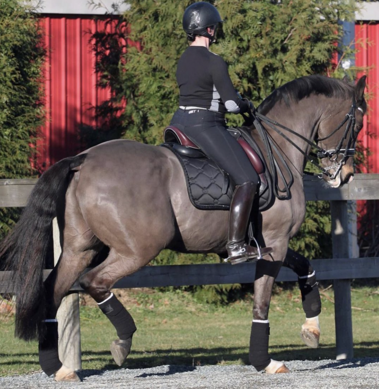 Et pour te monter, une photo montée de "presque ma selle" (J'ai juste le dessus des matelassures arrières bordeaux en plus), ce que ça donne le bicolore une fois à cheval.