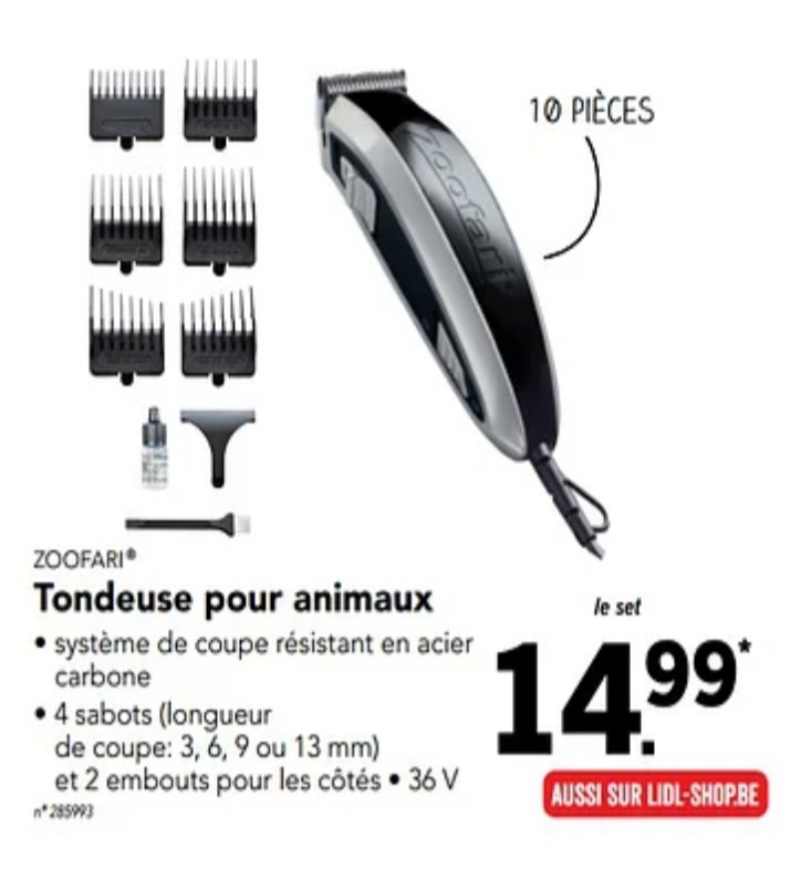 Pour la tondeuse quand je faisais dessous d'encolure, épaules et poitrail pour Simbad, je faisais aussi avec une petite tondeuse pour chiens à 20 balles.