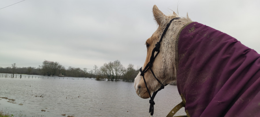 juu_lie plus mouillé que gelé; quoi qu'ils annoncent des températures négatives les jours qui viennent, j'ai mis la sous couverture à Poney, il a donc 300gr sur le dos... Avec sa petite toux, j'ai préféré !