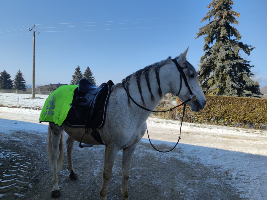 Hier j'ai essayé le tapis Equiline : j'aime bien car rigide et reste bien en place . Je valide la forme . Il n'a pas l'air de bouger mais il faudra que je vois sur du travail + actif car hier la cavalière était en mode glacée...