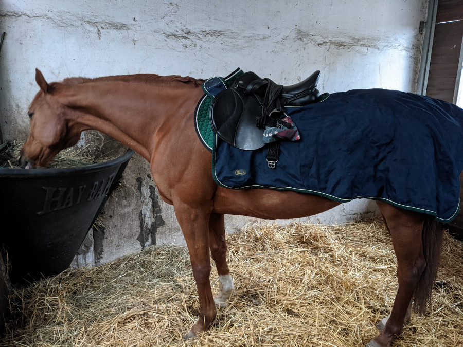 Je pourrais le doubler avec une couverture polaire ou laine. Le plaid BoT s'y prêterait bien aussi, vu que je m'en sers surtout sur les reins d'Amor avant le travail, en allant au manège.