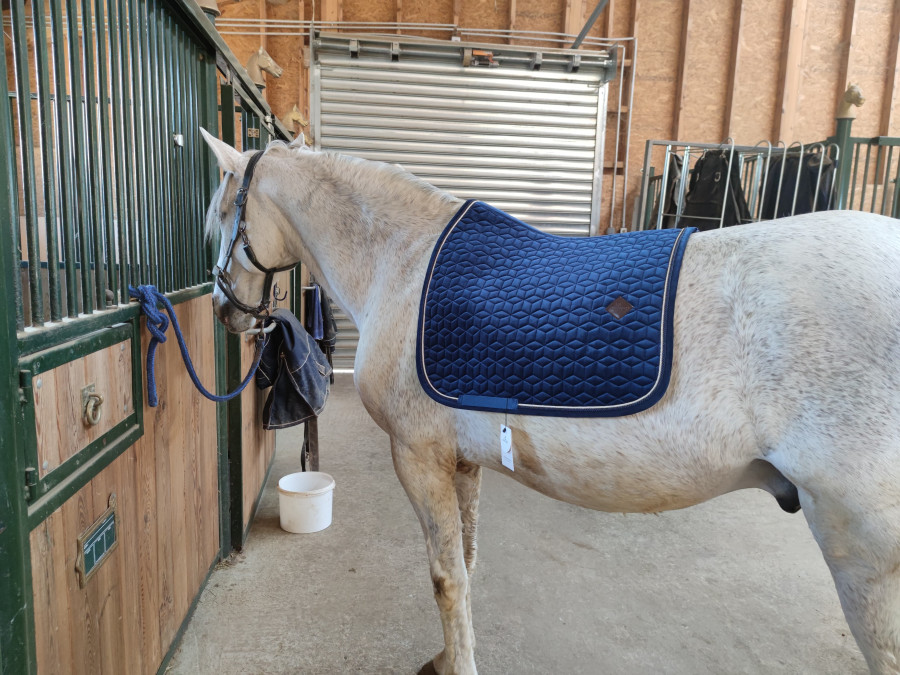 juu_lie j'aime bien les contrastes. Du coup hors compétition dressage où je préfère rester en noir traditional, j'aime bien le noir sur le bai et alezan. Et noisette/Cognac sur noir/bai brûlé. Quand au gris j'aime bien les deux mais amica ayant des petites taches marrons qi n'ont pas grisonné je pense que cela va bien ressortir sur elle. Plus cela pourra aller sur son fils lors de son débourrage. Il est bai brûlé grisonnant.