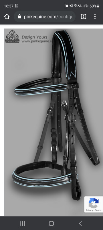 Bridon pink equine en noir et baby blue avec muserolle francaise commander pour Hadley mon welsh mountain.