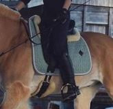 Alors oui ça passe, il n'a pas freiné ni râlé. Mais j'aime pas plus l'équilibre de la selle sans, il se gonfle plus au sanglage donc ça doit être moins agréable au début, et alors moi : je suis nettement moins à l'aise ! Je ressens beaucoup plus la raideur de la selle et des matelassures Cair.