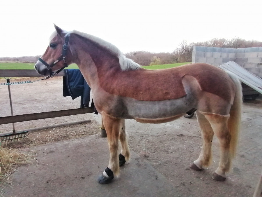 Ici balade et j'ai mis le tapis simple au lieu de l'amortisseur Mattes (avec EWWA). Simbad a bien bien repris du dos et des formes (à part les fesses), donc je voulais voir si ça passait.