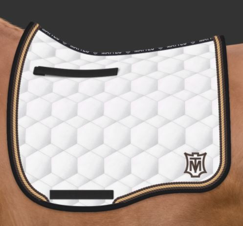 J'ai fait une conclusion y a quelques jours de ça. Je déteste les tapis Paddock. Enfin, je les trouve superbes, je ne lâcherais ceux que j'ai pour rien au monde parce qu'ils sont super jolis... MAIS : ils ne vont pas du tout à Eylion. Ils glissent sous la selle, s'écrasent sur le garrot, je suis obligée de reseller trois fois avant d'arriver à les bloquer. Bref, pas un franc succès pour nous.