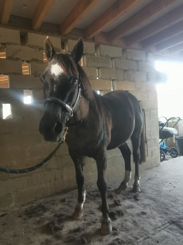 On a juste baladé à pied aujourd'hui, mais ça va, il n'est pas abattu, juste un peu claqué. Je vais augmenter sa ration et voir comment ça se passe.