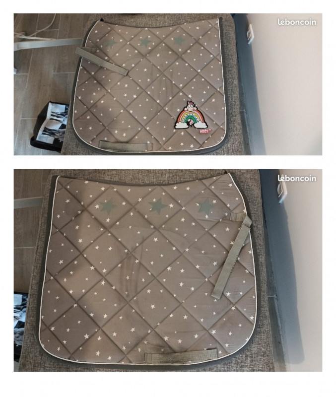 Presque parce qu'a un moment donné j'ai eu envie de rosegold sur mon poney et que j'ai acheté un tapis marron glacé et rosegold qui allait bien avec la selle brune. La, j'ai un doute avec la selle noire. Du coup je réfléchis à le vendre pour un noir/rosegold...