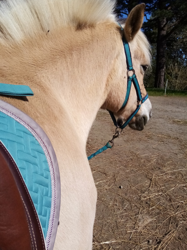 hathi ce look crème est vraiment sympa, sur un cheval foncé comme ça, je préfèrerais même ça à du "blanc dressage".