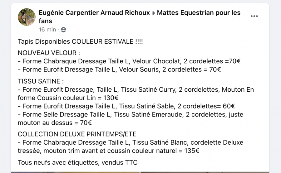 cytiz Moi je reviens toujours à Mattes également . Parfois je me laisse tentée par d'autres marques qd je trouve un joli tapis ( mauvaise expérience récente avec eskadron...) . C'est le seul qui tient la plupart de mes mes critères ...