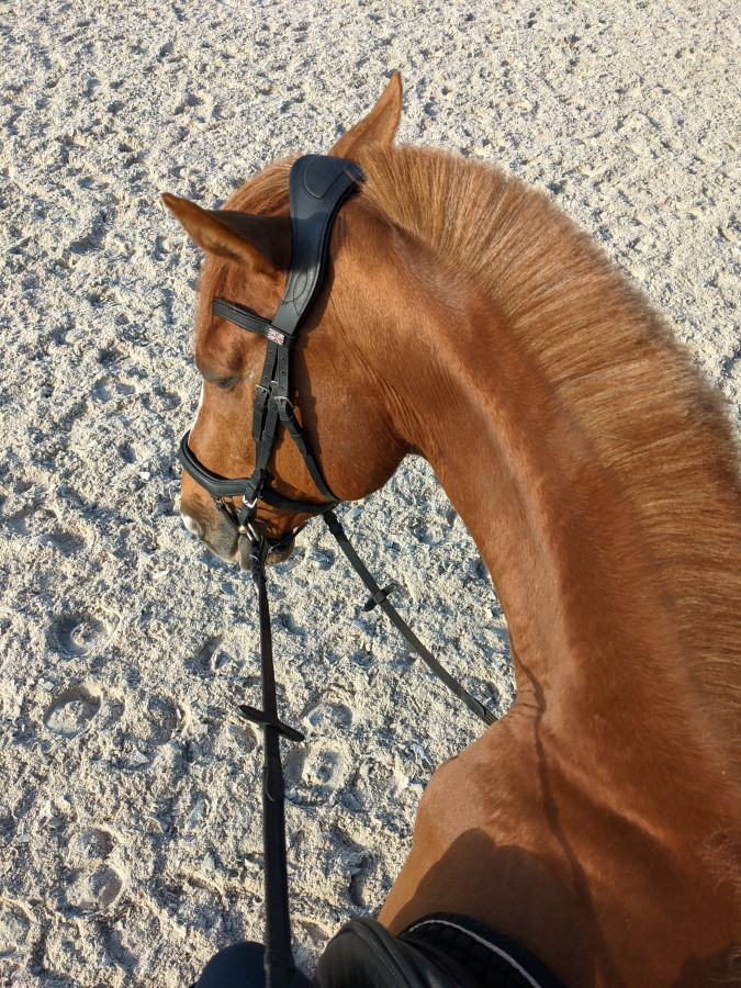 J'ai un doute sur la jonction têtière/frontal de mon filet. Le frontal ne peut pas remonter plus haut, et appuie du coup sur le rocher...c'est aussi une des raisons pour lesquelles je veux changer. Aujourd'hui ma mono l'a remarqué et elle était pas fan non plus. Je me dis qu'avec les actions de main ça appuie forcément dessus.