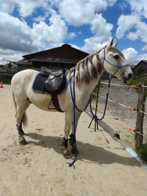 Une voisine a une selle à vendre. Je lui ai demandé si elle l'a encore, j'ai peur d'entendre le prix (c'est une Schumacher). Je l'ai déjà mise sur Amor, donc elle passe vraiment super.