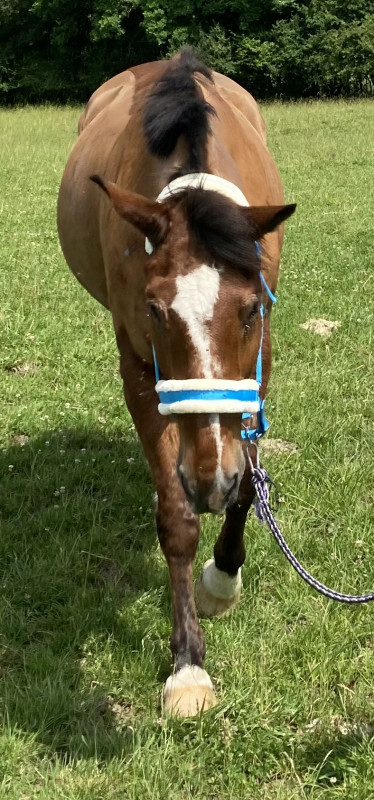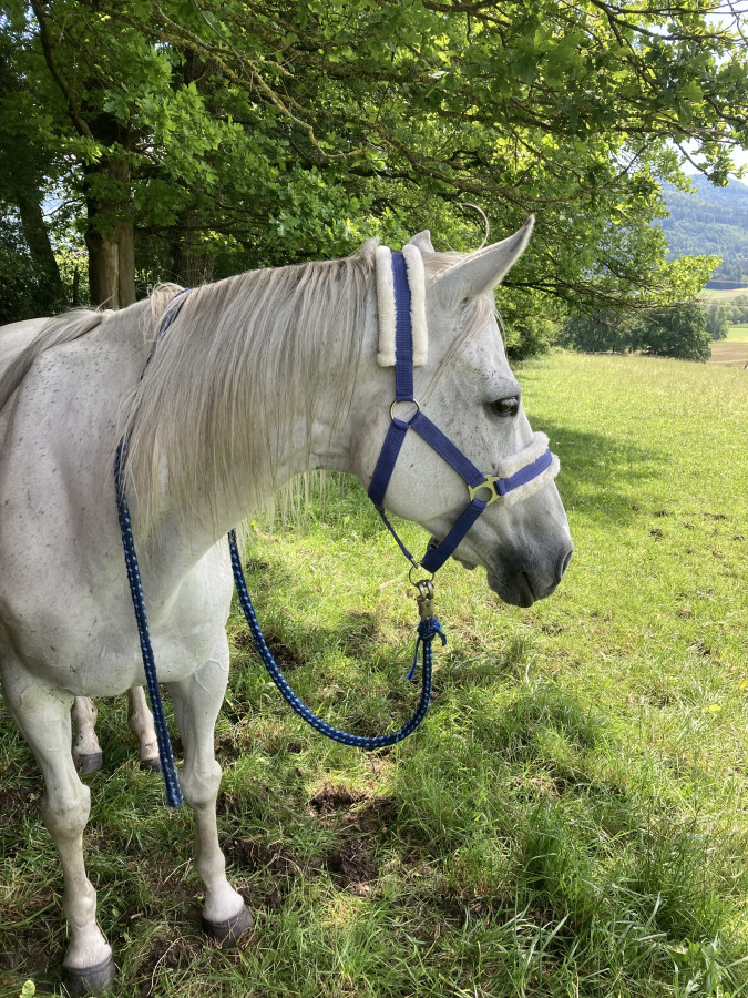Elle irait sur la ponette avec le mors à aiguille mais les montants sont trop long pour ne mors pessoa. Au pire je change les montants, je dois bien en avoir des noirs cob ou poneys qui traînent à une place … mais du coup j’ai pas de photo.