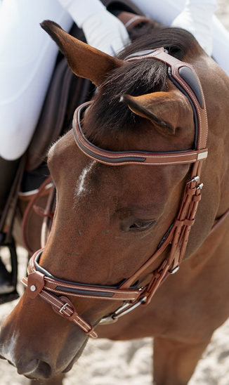 marj1981 Coucou je l'ai vu ! Le cuir est souple et les matelassures de la tetiere pas trop épaisses. Le "pont" est une bande de cuir nu souple . Après à savoir si c'est mieux qu'une tetiere classique ???