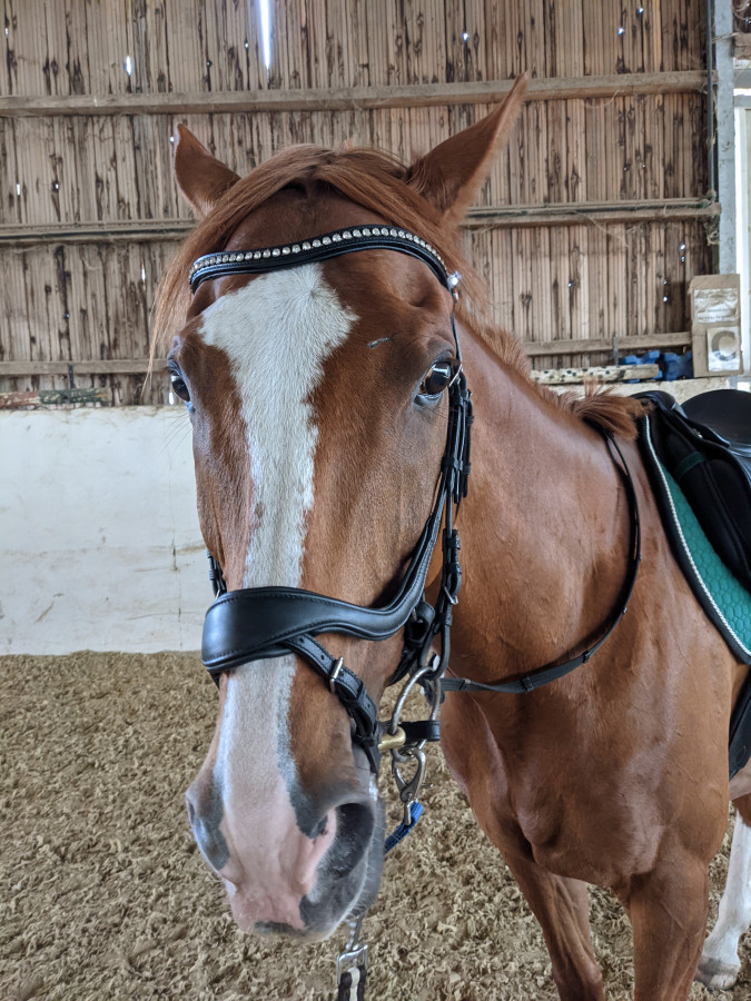 J’ai sorti son bridon de concours…. J’ai testé le mors baucher. C’est un mors que j’ai beaucoup aimé sur lord. Sur Irka ça avait été l’échec total… du coup ce mors traînait dans mes affaires depuis 10ans… (oui parce que celui de lord est plus grand…).