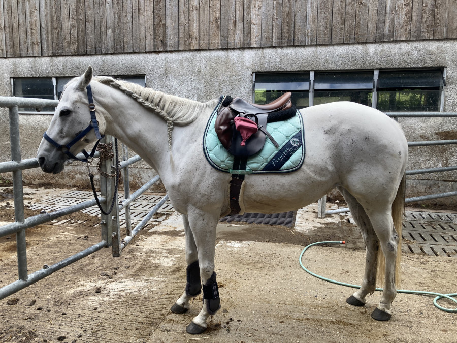 Ce matin j’arrive à l’écurie… c’est férié aujourd’hui dans ma région. On a deux petits parcours d’entraînement dans une écurie à 20mn de la ferme.