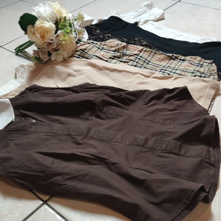Bon sinon moi, j'avoue ces derniers mois, j'ai un peu déconné. J'avais acheté une veste de concours, mais avec, j'ai acheté de temps en temps un chemisier sur Vinted (toujours à 5€ ou moins)... Du coup, j'ai une belle collec' !