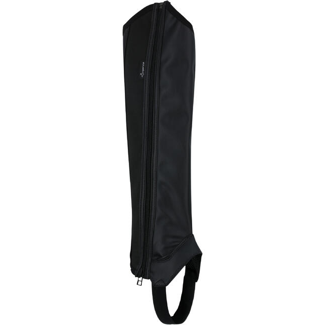 Elles sont moches ! Mais pas plus que les mini chaps. Je me dis que ça préserverait mes boots, que j'utilise avec mes chaps en cuir (promis, on ne voit pas du tout la différence cuir/synthétique) - et donc, en concours. Le synthétique me fait un peu peur... Mais en y regardant à deux fois, je me répète mais le modèle ressemble finalement en bottes, à ce que j'avais déjà en mini chaps.