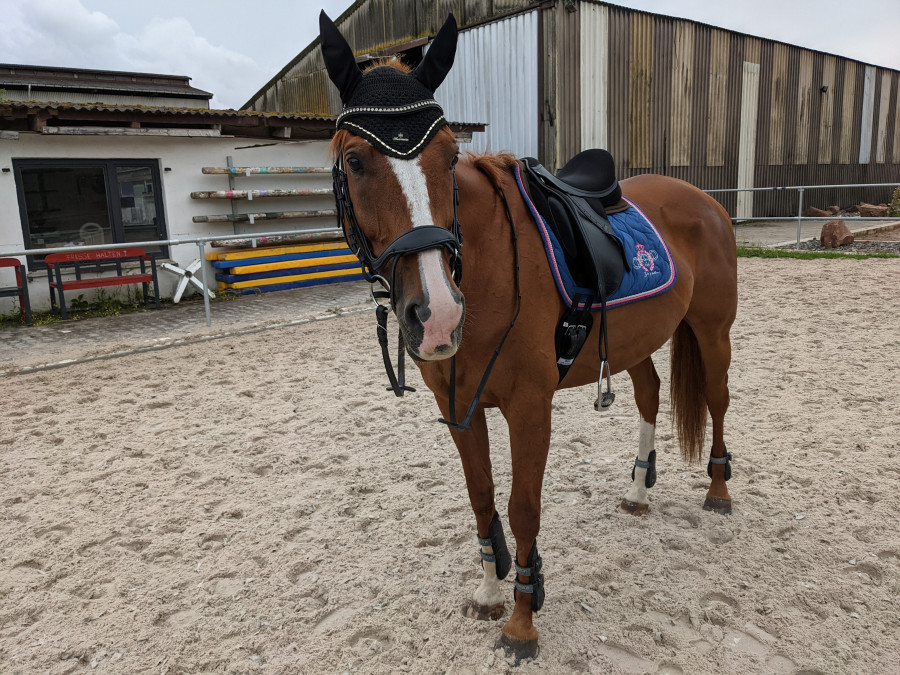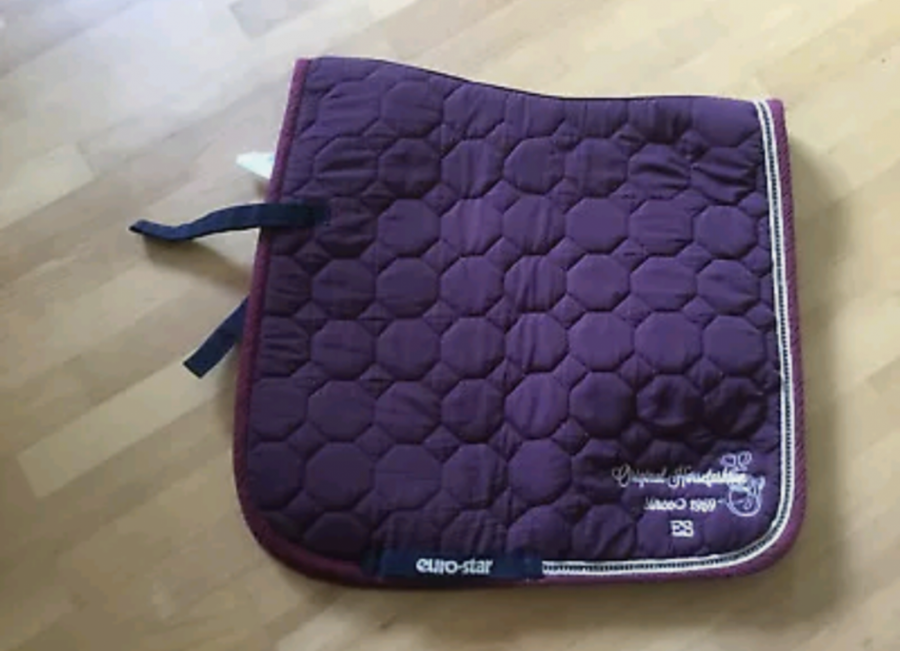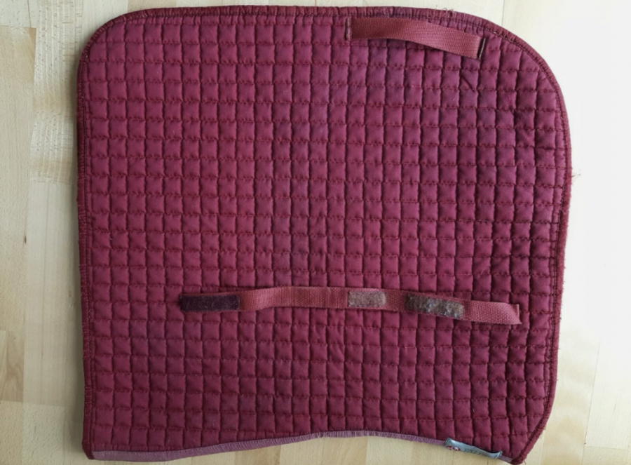 J'ai l'occasion de racheter mon vieux tapis bleu (photo 1). Je l'avais vendu quand j'avais plus de selle de dressage, et je regrette un peu. Le défaut c'est qu'il est assez épais, l'avantage c'est qu'il se tient super bien et ne bouge pas.