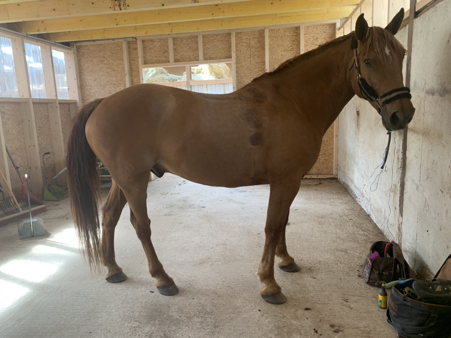 On a coupé lez crins qui ne ressemblait plus a rien lol ! Il est chou comme ca ! Et on a confirmé la bonne entente dz choca avec sa muserolle de side