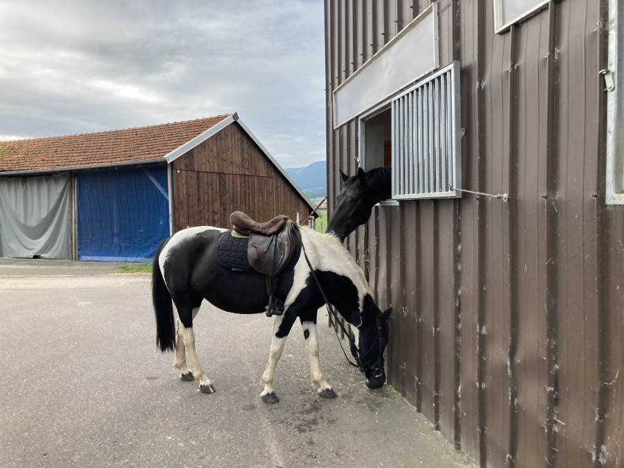 Ma poons a réussi à charmer un beau jeune cheval de sport qui du coup a partagé sa ration