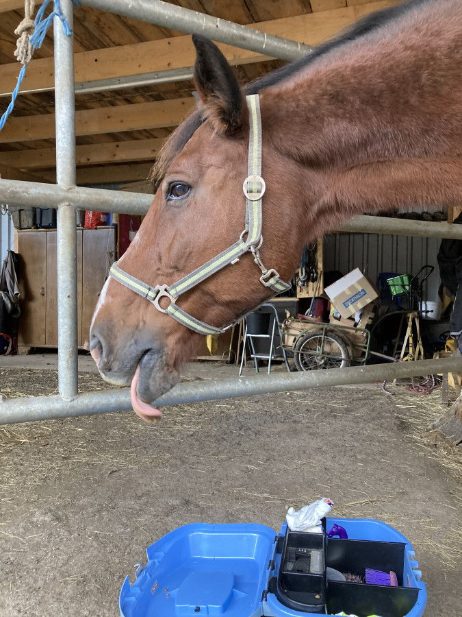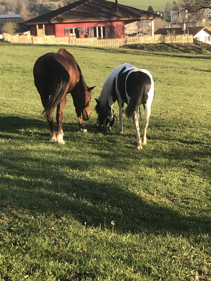 Sinon s'il a la possibilité/la préférence d'être au pré... Bof. J'ai pensé laisser ma place "sur les installations"; y a des champs de plusieurs hectares pour les chevaux qui ne travaillent pas, mais c'est comme pour le casier. J'aurai plus ma place là après sa convalescence... Et surtout : les terrains sont vite cracras aussi. Et surtout, j'ai souvenir du confinement comme ça, laisser sans bosser sur l'herbe. Et je crains la fourbure (oui, même à l'automne, même en hiver).