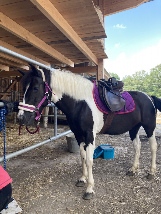 et miss poony Jenna 11ans qui est entrée dans notre vie de manière assez inattendue. Elle nous a été donné à l’âge de 7ans à peine manipulée. Elle faisait partie d’un troupeau de 10-15 chevaux et poneys appartenant à deux sœurs qui les avaient juste pour le plaisir de les regarder. Mais elles ont « perdu » des pâturages et ont dû réduire leur troupeau. Jenna alors non débourrée, un peu farouche et méfiante au premier abord, elle n’ont pas trouvé à la vendre. Et ses personnes ont vu que j’avais des filles et que mes chevaux semblaient bien entretenus, m’ont proposé de me la donner pour mes filles pour notre grand bonheur (et celui de lord qui l’a pris comme « animal de compagnie » et accessoirement: mouchoir ).