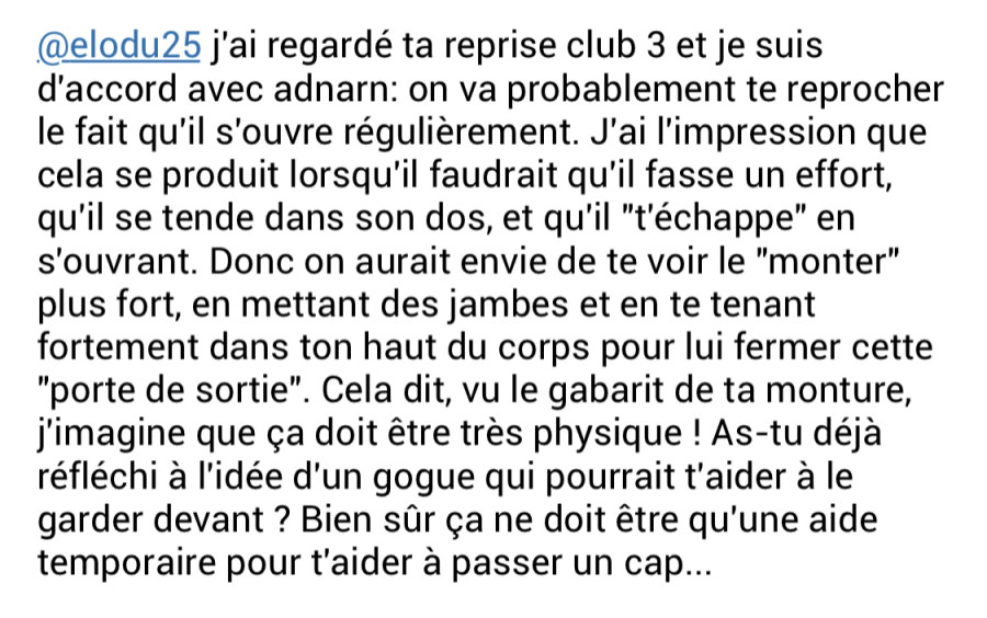 Bon. Moi j'arrive pas à me défaire de cette autre écurie / club : j'en REVE la nuit (vous allez me trouver fada).