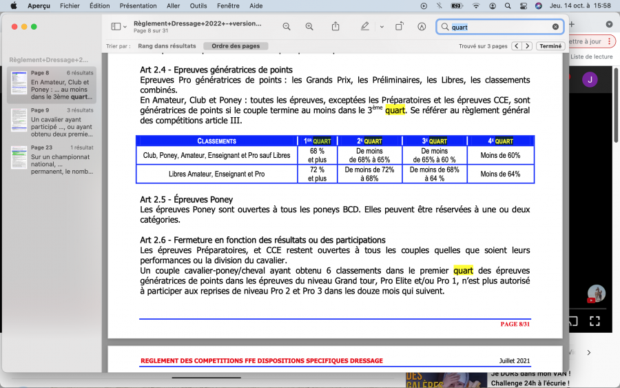Tiens donc, j'avais loupé ce truc des % qui déterminent le quart en dressage !!!