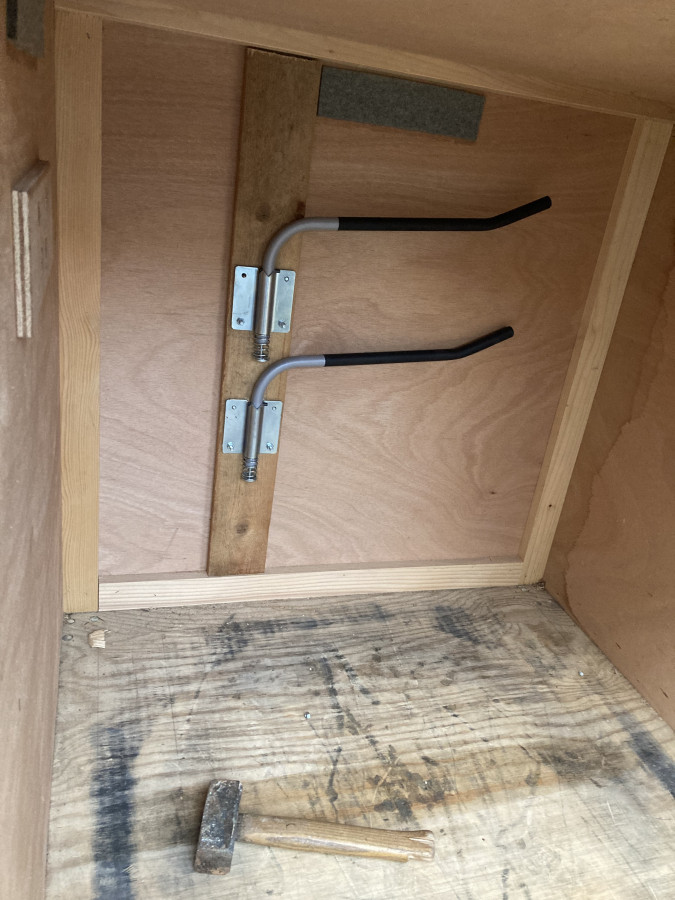 Sinon occupation d’une partie de l’après-midi: j’ai récupéré une caisse militaire de transport: nouvelle armoire d’écurie pour les filles!!!