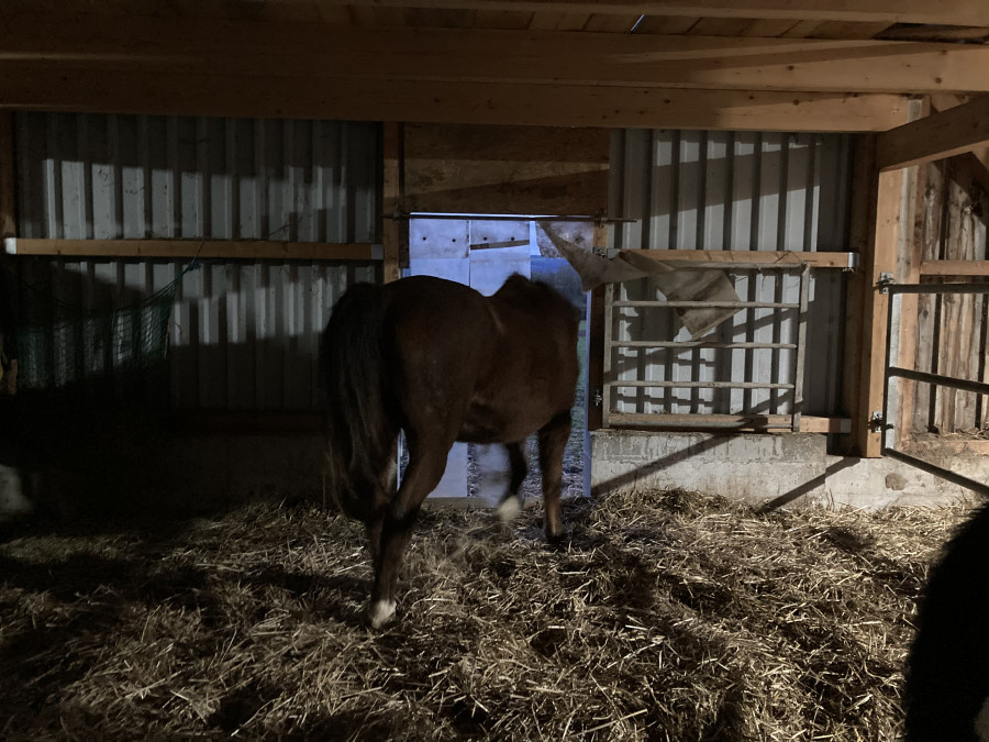 Ici en arrivant ce soir à l’écurie: très bonne surprise. Mes bandes ont été installés!!!
