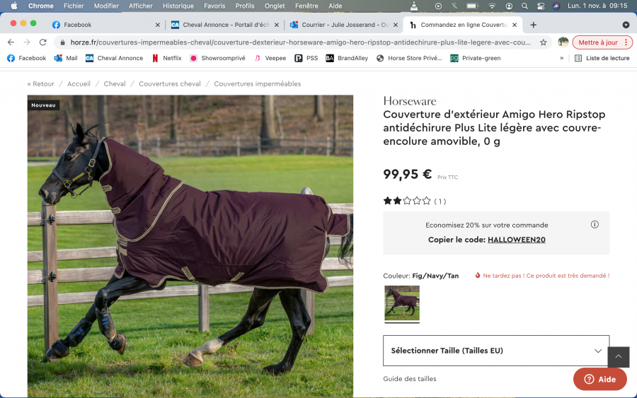 Par contre je suis pas « satisfaite » de la fermeture devant. Il n’y a pas d’élastique. A savoir qu’on l’utilise principalement pour le marcher en main et que si on veut le laisser brouter, il y a une sacrée tension au bas de l’encolure…