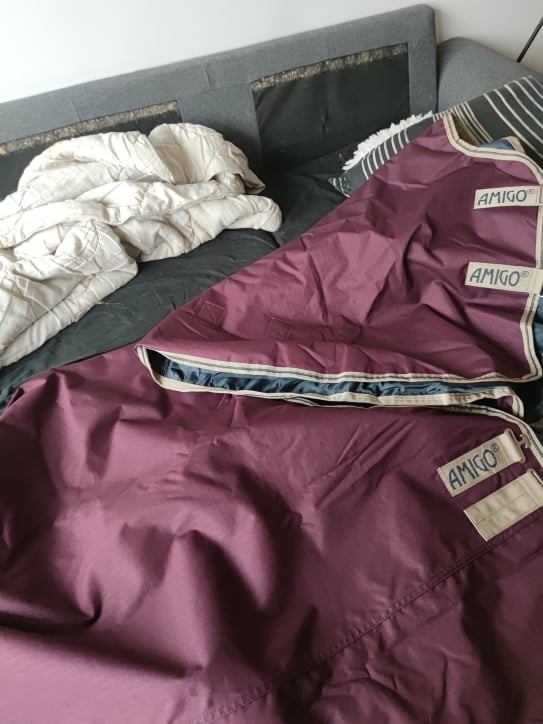Moi j'ai 1 liner par grammage et plusieurs imper (mais mes chevaux rentrent tous en 6'3). Et depuis l'année passée gris à un liner back on track...