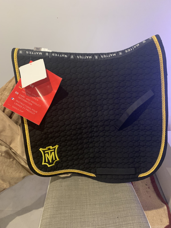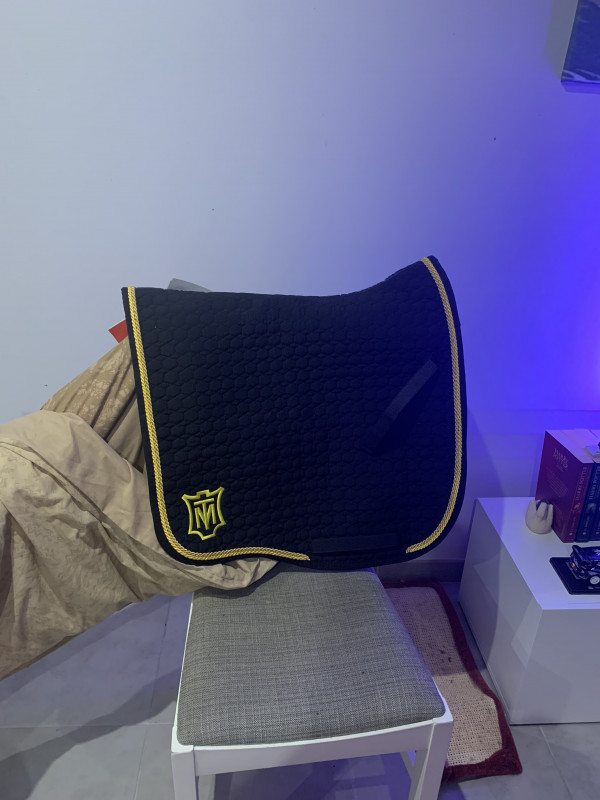 Mais entre temps j'ai recu mon tapis mattes ! Il est tres semblables a celui de julie (et je m'en excuse) mais je voulais faire un tapis assorti a ma selle qui devrait arriver d'ici 15 a 30jours !